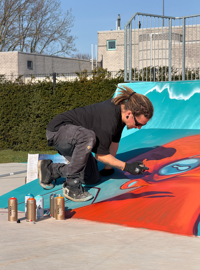 Naast al deze sportieve en creatieve activiteiten was er nog een echte blikvanger: graffiti-artiest Erik Ruigt! Hij gaf de skatebaan een compleet nieuw en kleurrijk jasje – ontzettend vet om te zien en een unieke ervaring voor de kinderen.